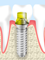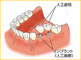 歯を失った部分の顎の骨に人工歯根(インプラント)を埋め込み、その上に人工歯を被せる治療。