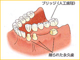 横並びに1~数本の歯を失った場合に、両脇に残った歯を削って支えにして、連なった人工歯を被せる治療。